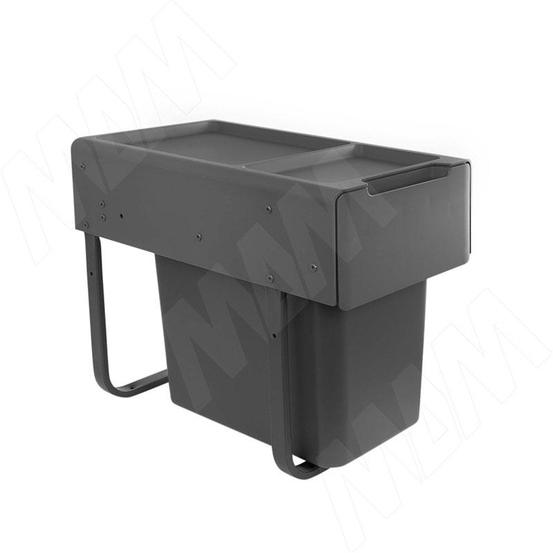 EASYBOX F30 Корзина встраиваемая для мусора выдвижная с доводчиком и крышкой-полкой, объём 22 (1x22) л, цвет тёмно-серый