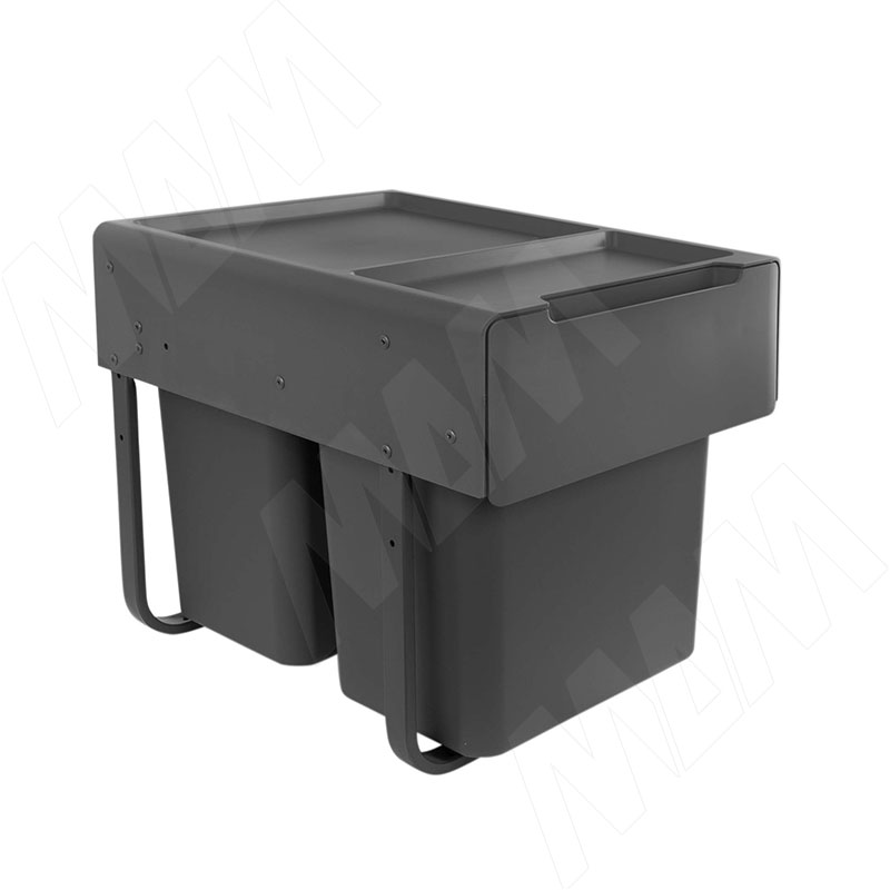 EASYBOX F40 Корзина встраиваемая для мусора выдвижная с доводчиком и крышкой-полкой, объём 36 (2x18) л, цвет тёмно-серый