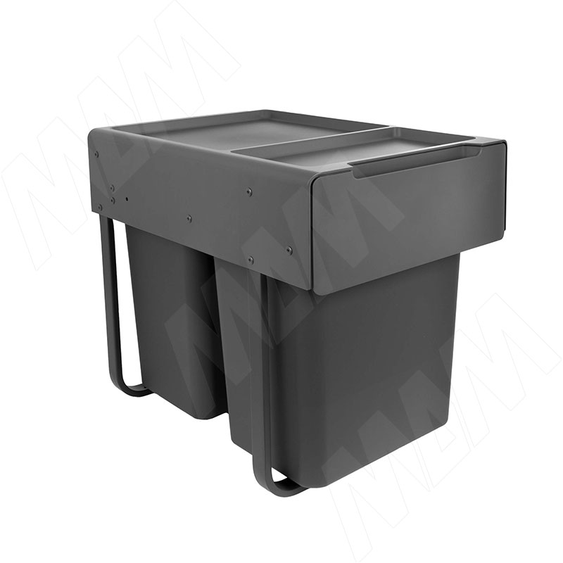 EASYBOX F40 Корзина встраиваемая для мусора выдвижная с доводчиком и крышкой-полкой, объём 40 (2x20) л, цвет тёмно-серый