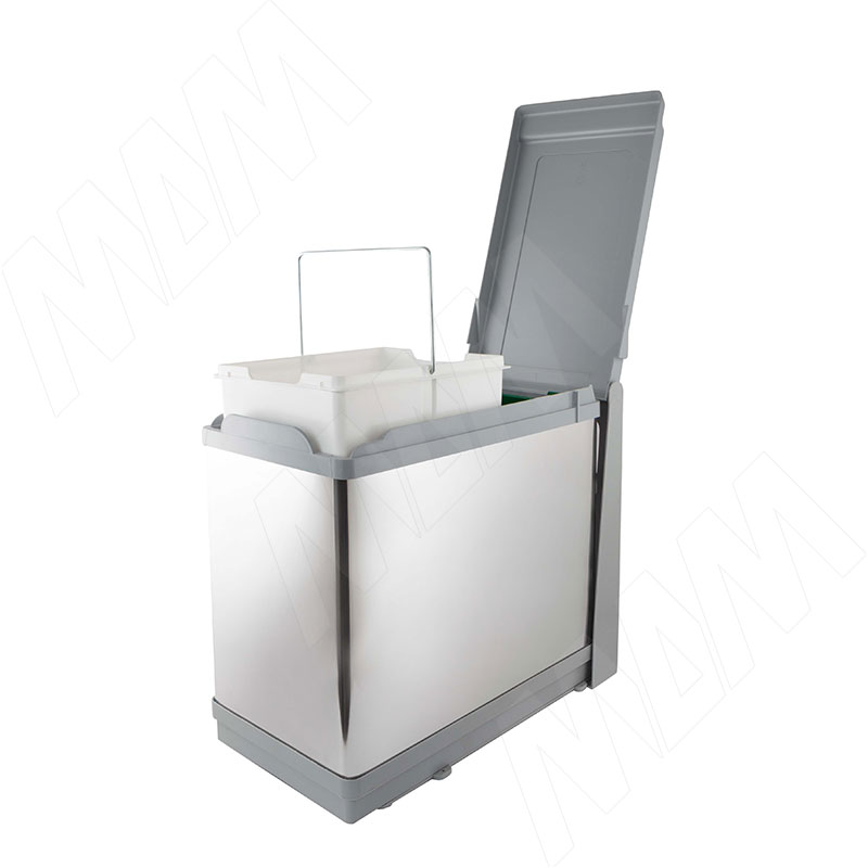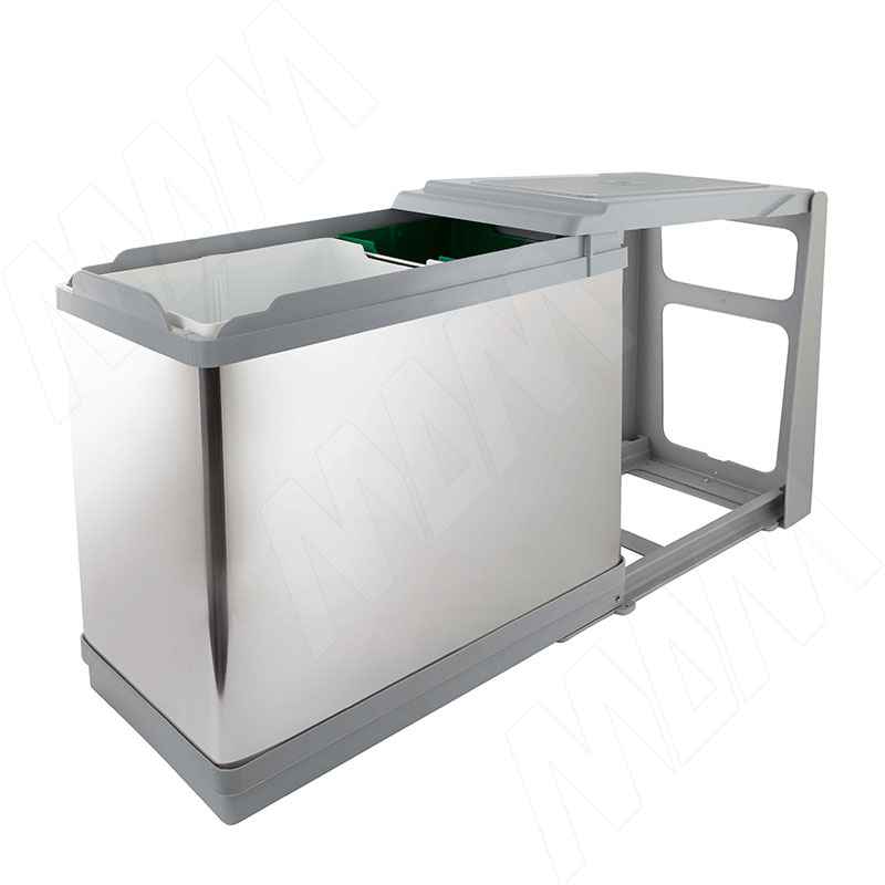 TOWER Система сортировки и хранения, 2 емкости (16л+10л), авт. крышка, нижнее крепление, пластик+нерж.сталь