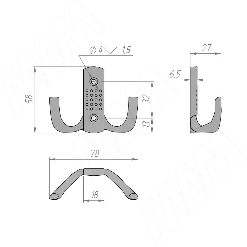 ARGUS Крючок двухрожковый хром матовый