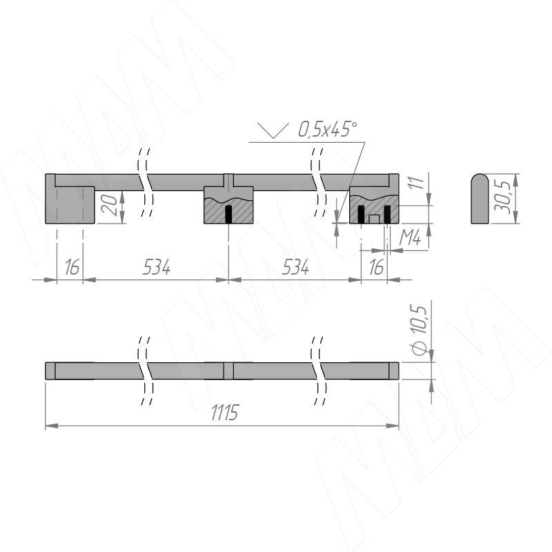 Ручка-рейлинг 1100мм (L=1115мм) черный матовый