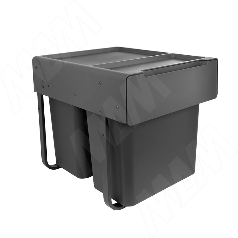 EASYBOX F45 Корзина встраиваемая для мусора выдвижная с доводчиком и крышкой-полкой, объём 50 (2x25) л, цвет тёмно-серый