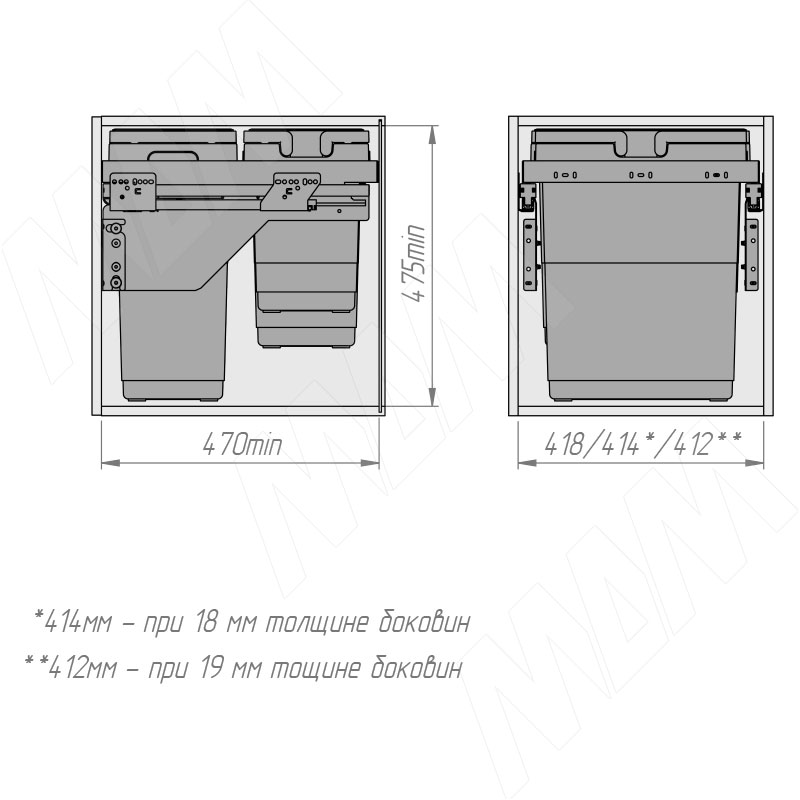 GLOBE 45. Система сортировки и хранения, 3 емк.: 30л+10л+9л, креп. фасада, полн.выдв., плавн.закр., напр. Nova Pro