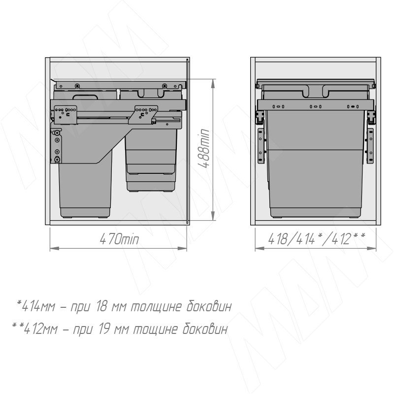 GLOBE EVO 45 система сортировки и хранения, 3 емк.: 30л+10л+9л, крышка-разделитель, креп. фасада, полн.выдв., плавн.закр., напр. Nova Pro