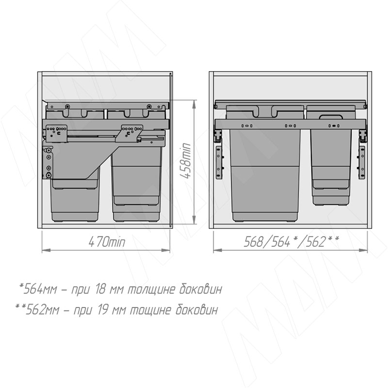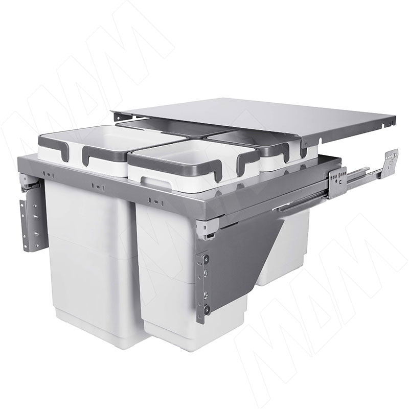 GLOBE EVO 60. Система сортировки и хранения, 4 емк.: 20л+20л+10л+9л, крышка-разделитель, креп. фасада, полн.выдв., плавн.закр., напр. Nova Pro