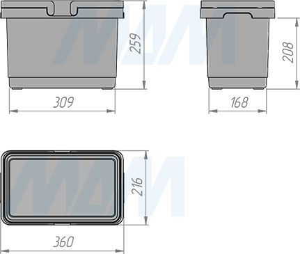 SINGLE L Ведро с ручками, пластик, объем 16л, H=260мм, цвет серый