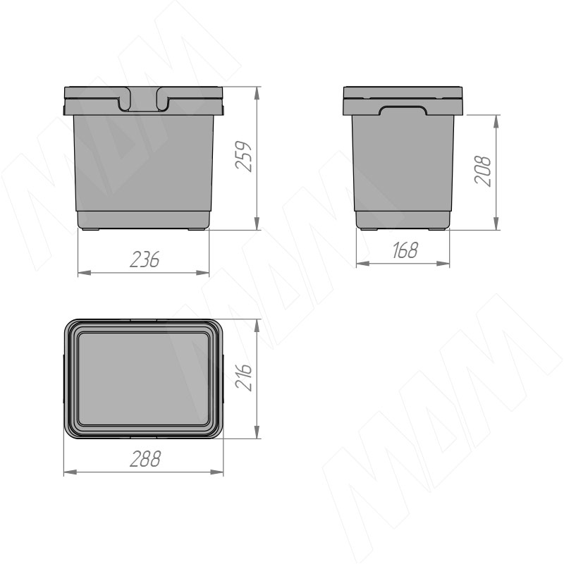 SINGLE M Ведро с ручками, пластик, объем 12л, H=260мм, цвет серый
