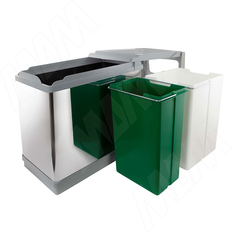 TOWER Система сортировки и хранения, 2 емкости (16л+10л), авт. крышка, нижнее крепление, пластик+нерж.сталь