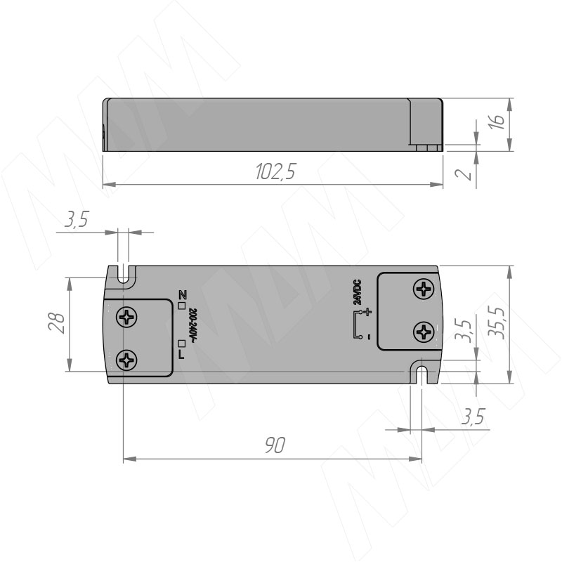 Блок питания AC-230/DC-24V, IP31, 15W
