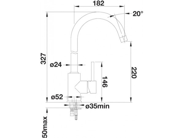- Отверстие под смеситель O35 мм