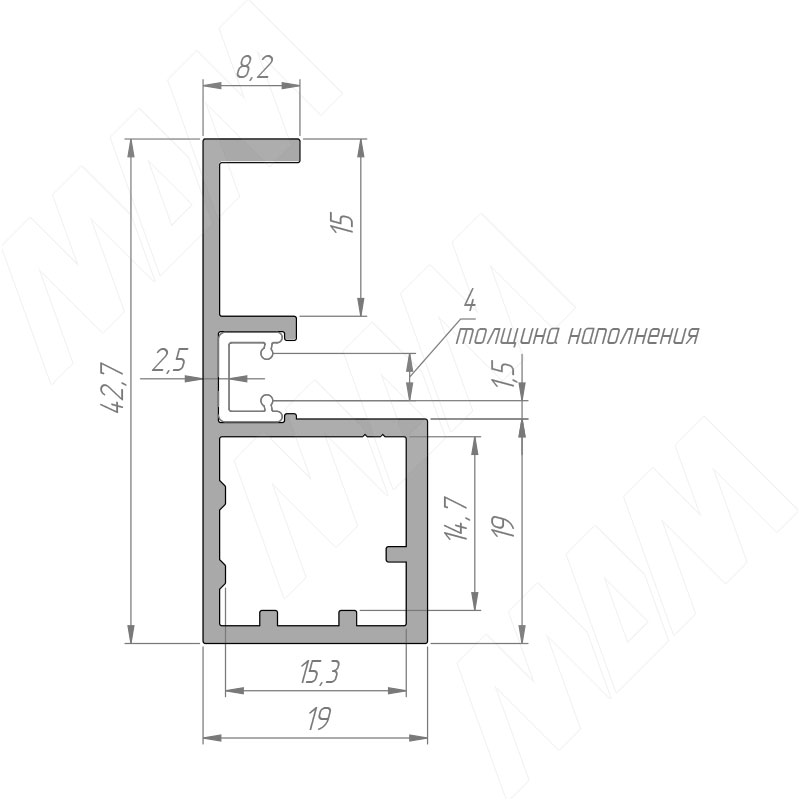 SECRET Профиль рамочный узкий, с интегрированной ручкой, серебро (анод), L-2700