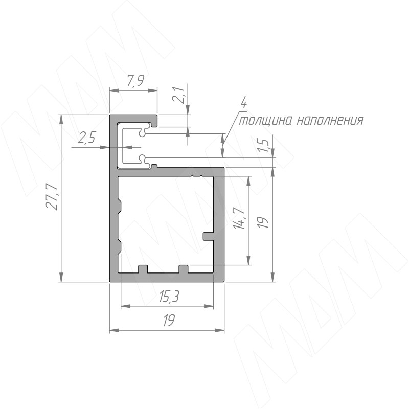 SECRET Профиль рамочный узкий, серебро (анод), L-6000