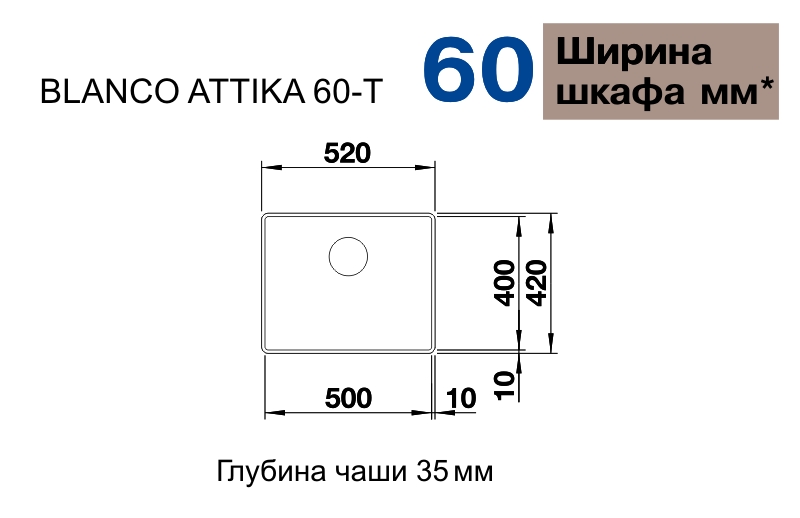 Мойка BLANCO ATTIKA 60-T нерж. сталь зеркальная полировка