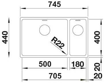 Мойка BLANCO ANDANO 500/180-U нерж.сталь полированная с клапаном-автоматом, правая