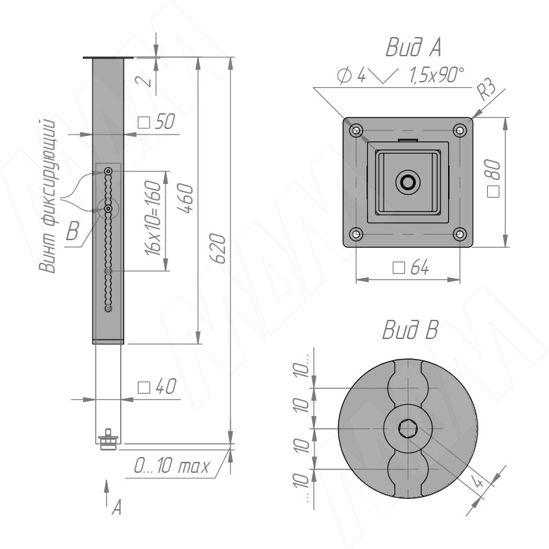 Ивиса опора для стола телескопическая 50х50, H460-620 мм, черный