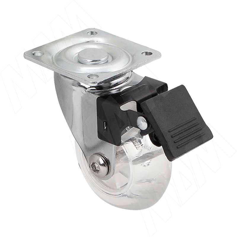 Опора колесная, D50 мм, со стопором, с площадкой, прозрачное колесо
