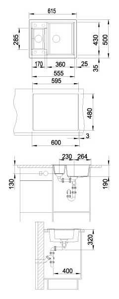 - Возможна установка под столешницу