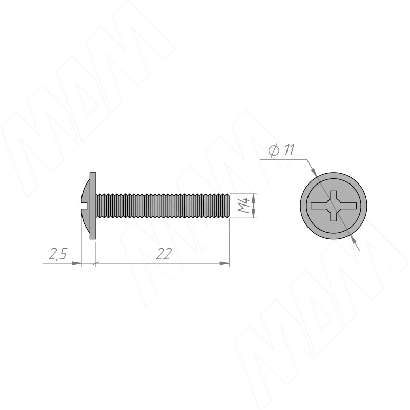Винт с полукруглой головкой под крест, M4x22