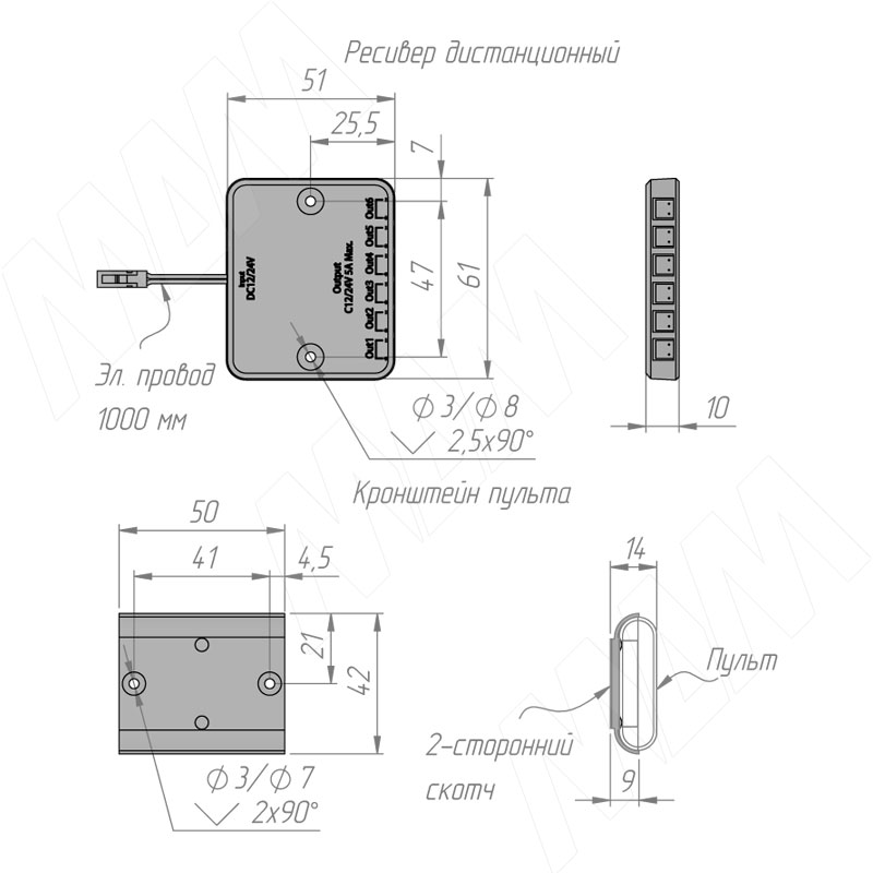 Выключатель беспроводной диммируемый, пульт ДУ, черный, 12/24V, 60/120W