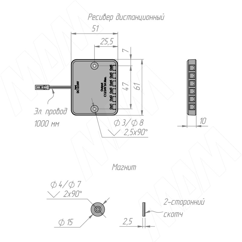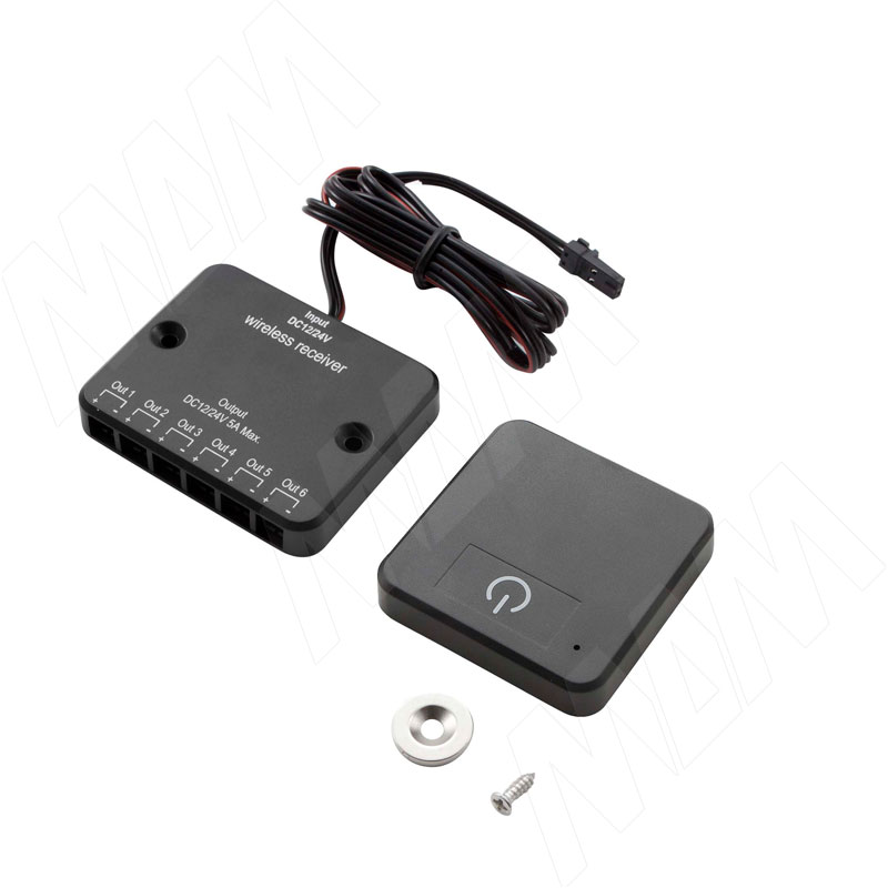 Выключатель беспроводной диммируемый, сенсорный, черный, 12/24V, 60/120W